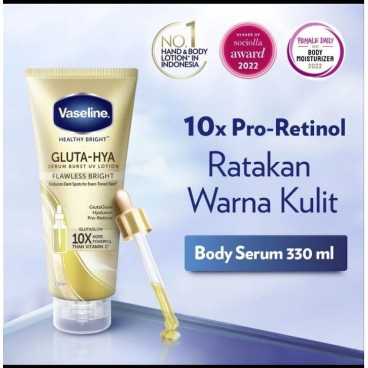 Promo Handbody Vaseline Healthy Bright Gluta Hya Serum UV Lotion Flawless Bright 330mili Kmasan Baru
