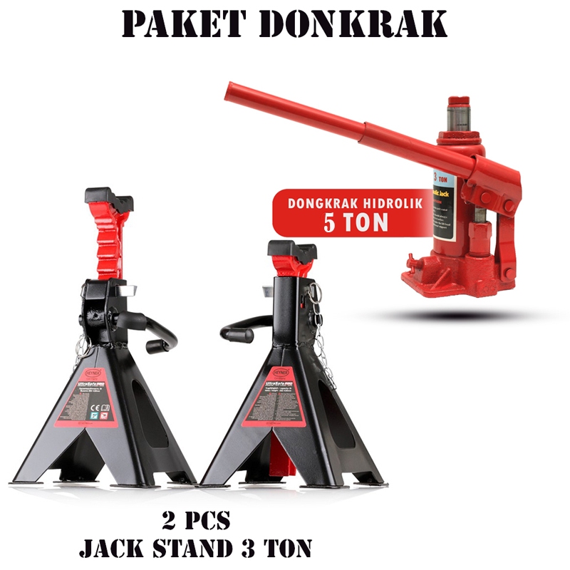 PAKET HEMAT MURAH DONGKRAK BOTOL 5TON + 2PCS JACK STAND 3 TON