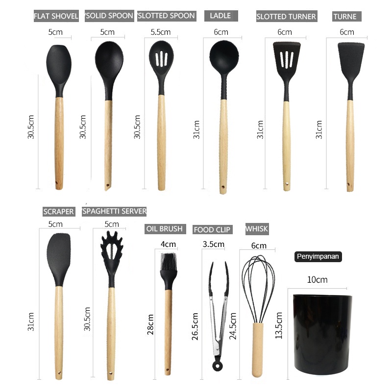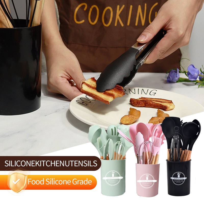 12pcs Alat Masak Sehat Tahan Panas Silicone Kitchen Tools Set Spatula Silikon BPA-Free