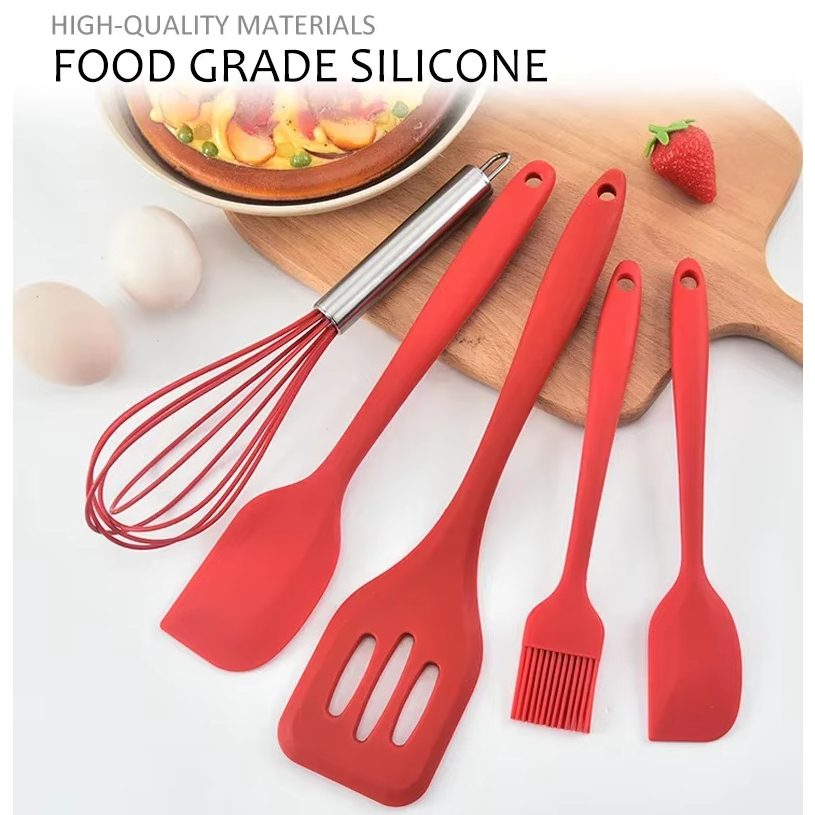 Spatula Set Alat Masak 5 In 1 Sutil Scrap Silicone / Spatula Peralatan Masak Silikon Tahan Panas