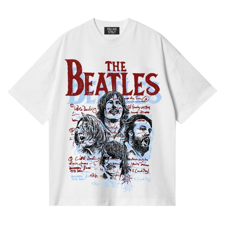 Rollingstout T-shirt Beatles lyric white baju musik metal rock pria Kaos Pria Keren Kaos Pria Dewasa Kaos Pria Band Kaos