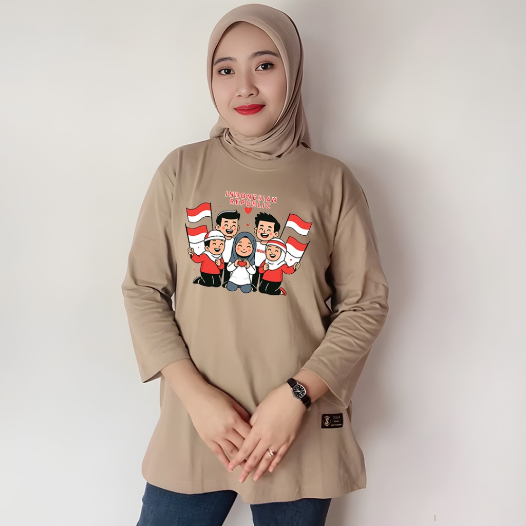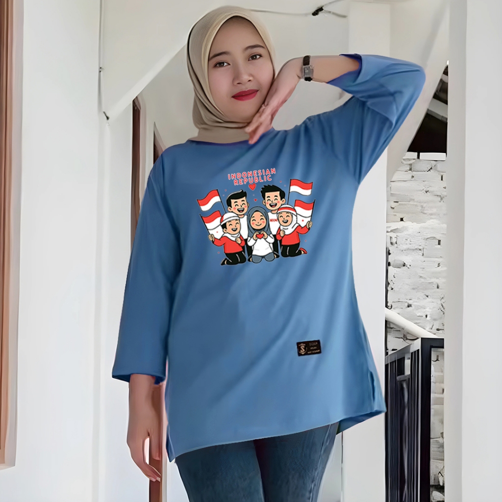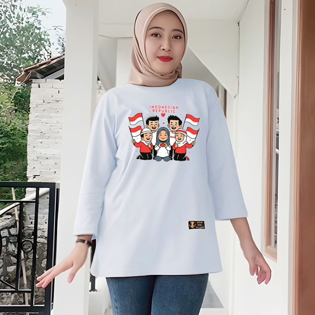 kaos cewek oversize kaos wanita jumbo lengan panjang series motif kemerdekaan merah putih agustusan