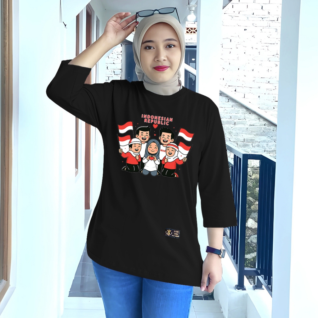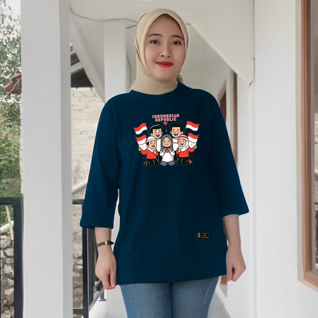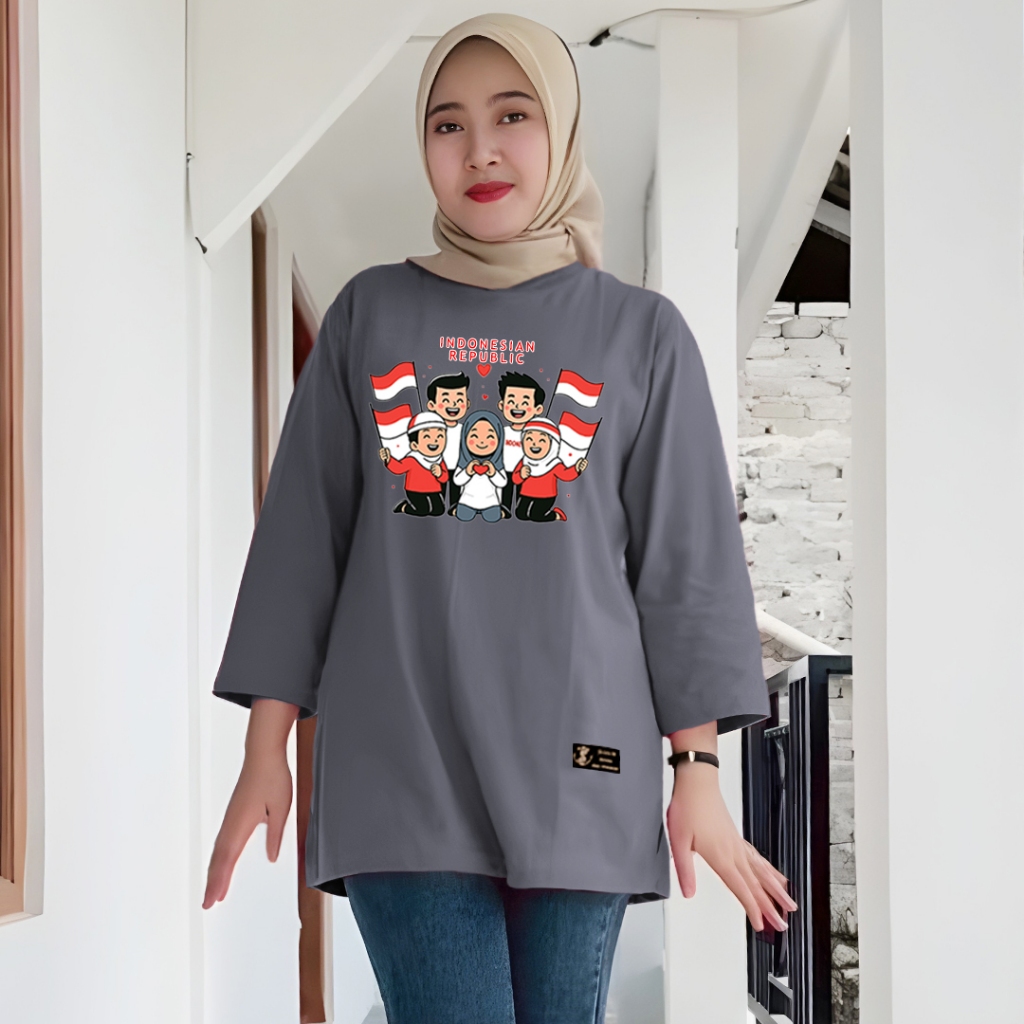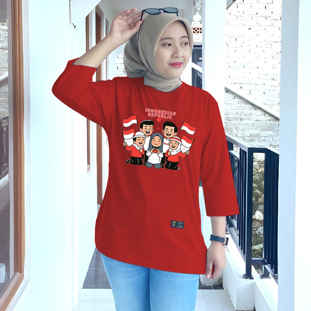 kaos cewek oversize kaos wanita jumbo lengan panjang series motif kemerdekaan merah putih agustusan
