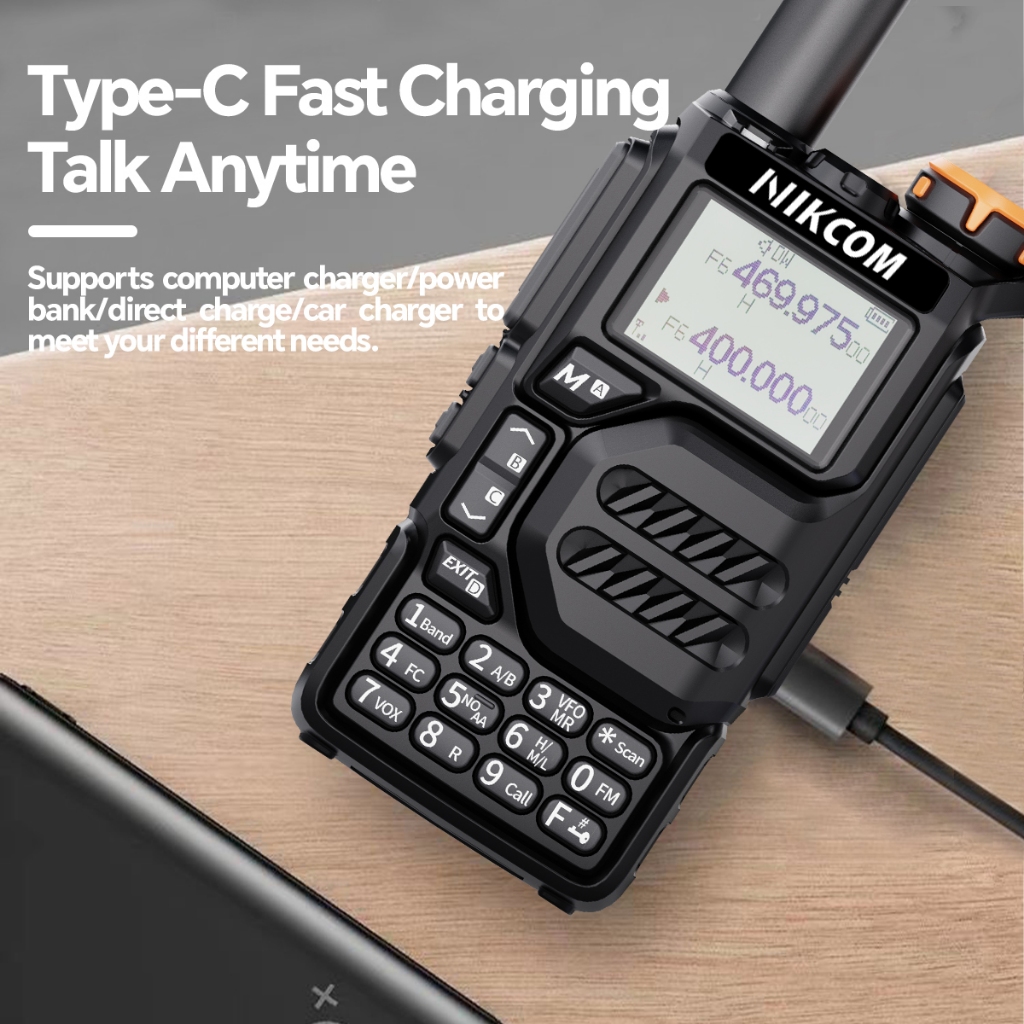 HT NIKCOM Radio Portabel Walkie talkie jarak jauh 10 Watt U/V Radio dua arah 200 saluran Di luar ruangan/Tahan air Handy