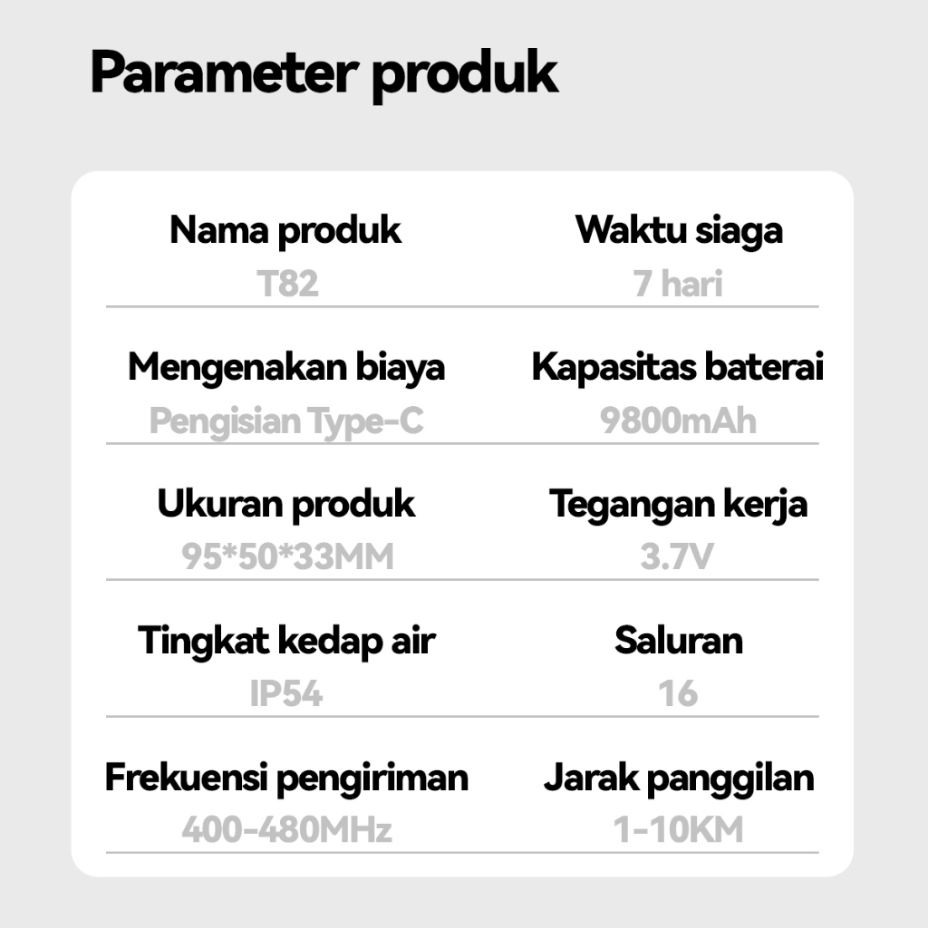 【2Unit/Set】HT Motorola jarak jauh 10KM T82 Two Way Radio 10Watt Power 16 Channels IP54 Waterproof High Capacity 9800mAh