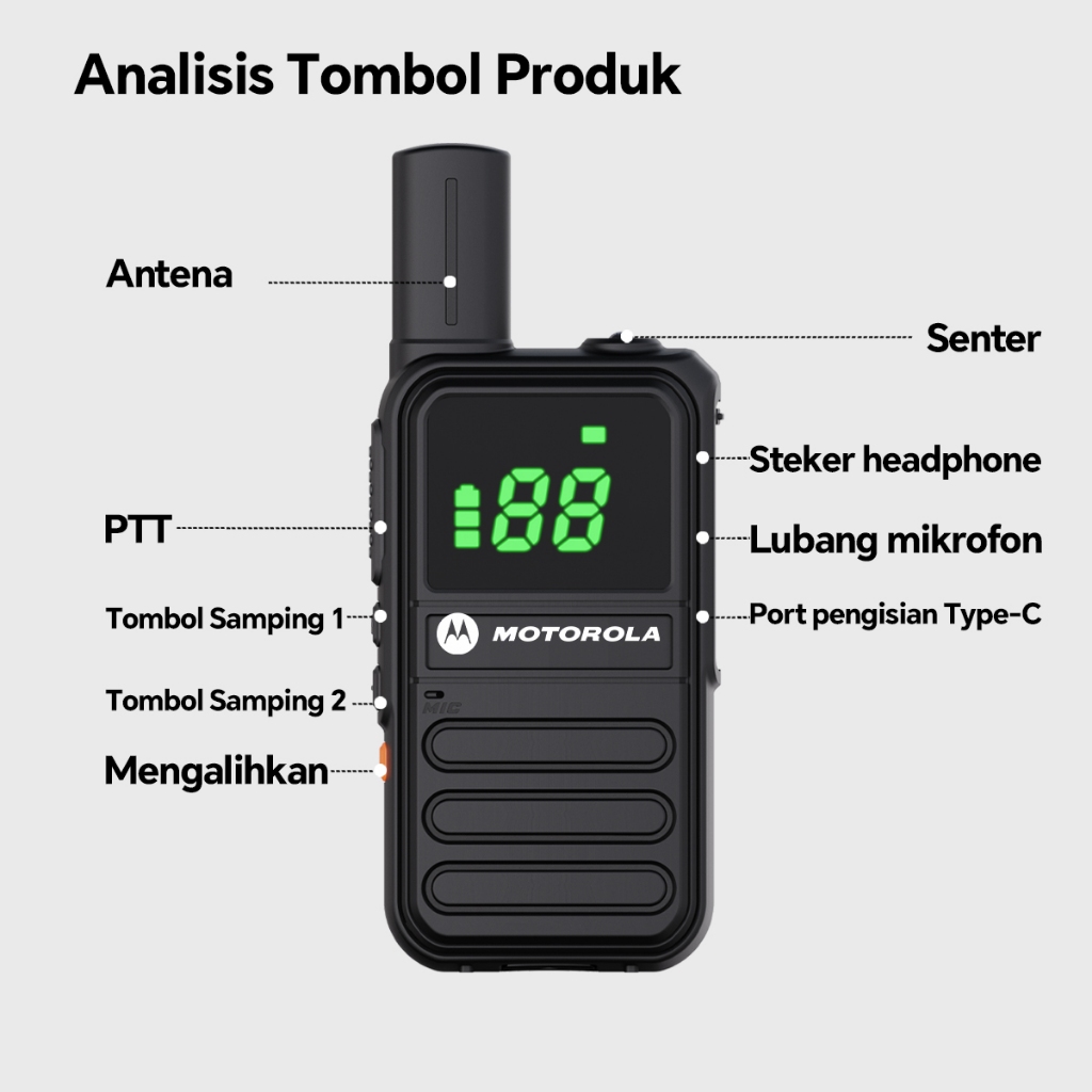 【2Unit/Set】HT Motorola jarak jauh 10KM T82 Two Way Radio 10Watt Power 16 Channels IP54 Waterproof High Capacity 9800mAh