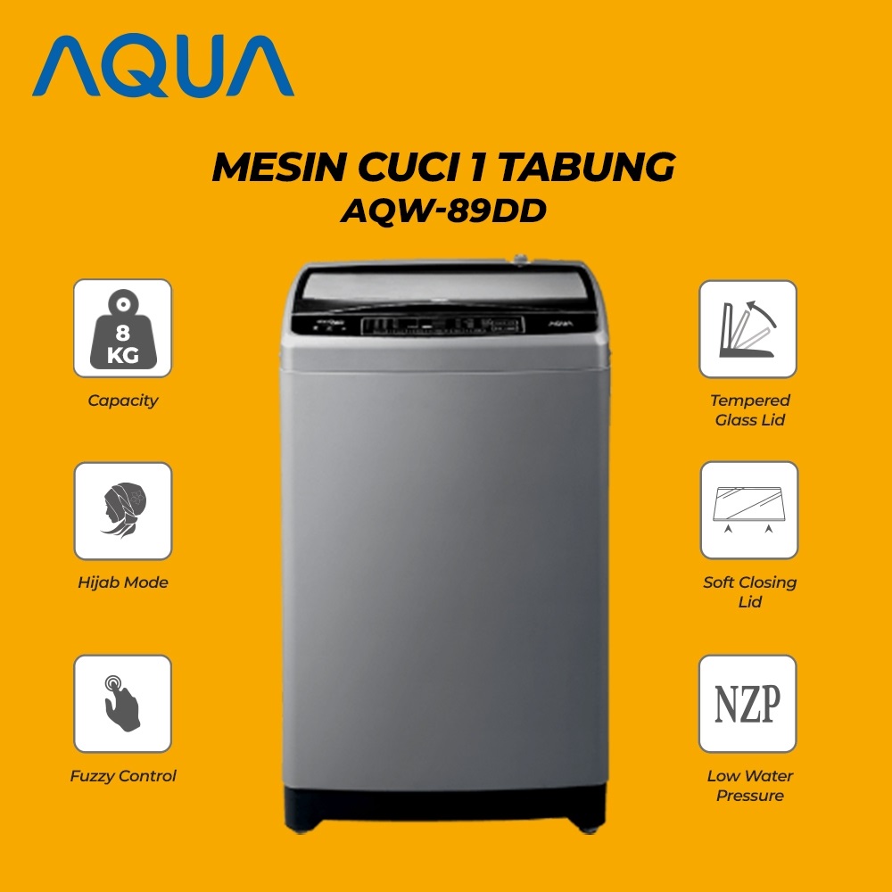 Mesin Cuci Aqua 1 Tabung AQW-89DD 8Kg Mesin Cuci Top Load Original