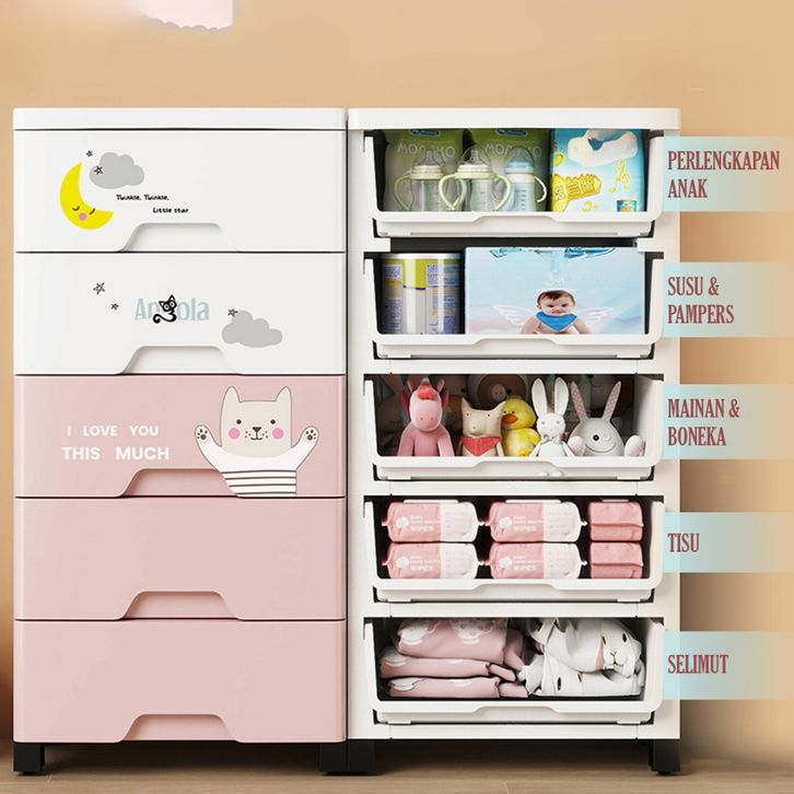 LIVING MALL Lemari Pakaian Anak 4 5 6 Tingkat C18-C20 Laci Drawer Susun Drawer Plastic Lemari