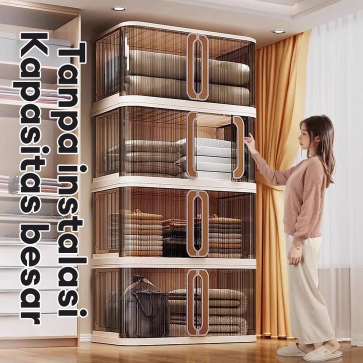 HOhome LEMARI PLASTIK JUMBO VIRUS Lipat Sliding Door LemariL SUSUN Plastik LEMARI PAKAIAN MINIMALIS