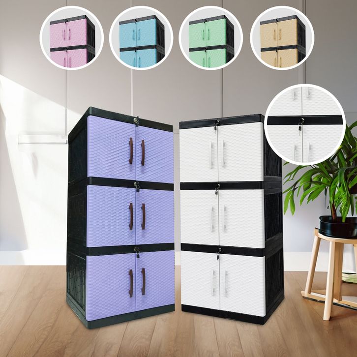 Lemari Plastik Susun 3 Rotan lemari baju Mini Susun 3 GALAXY FULL KUNCI