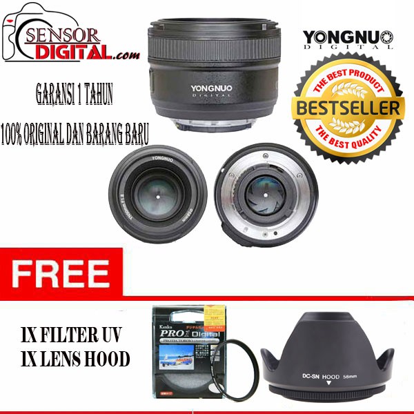 PAKET LENSA YONGNUO 50MM F1.8 FOR NIKON + FILTER UV DAN LENSHOOD