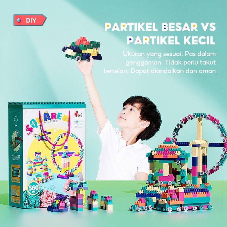BRICK BALOK SUSUN ANAK DIY 560 PCS BAHAN ABS KUAT TAHAN LAMA DIY FUN SMALL SQUARE GRANULE TERLARIS