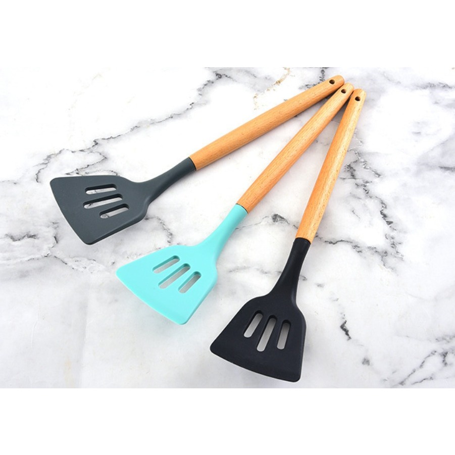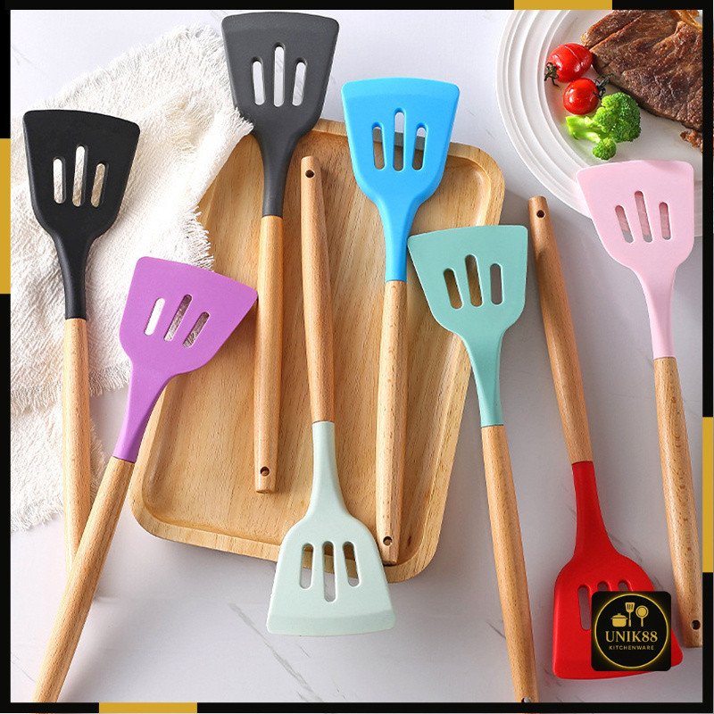 [UNIK88] Spatula Lubang Silicone Gagang Kayu / Spatula Silikon Tahan Panas