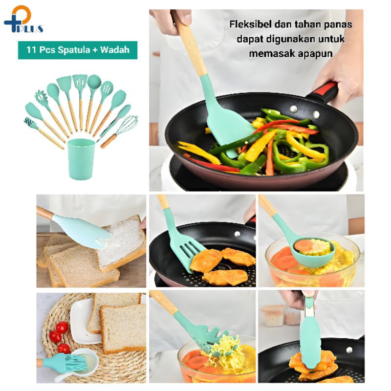 [ Pplus ] Spatula Silicone Set 12Pcs Wadah / Spatula Silikon 12 set anti lengket tahan panas / Spatula Peralatan Masak S