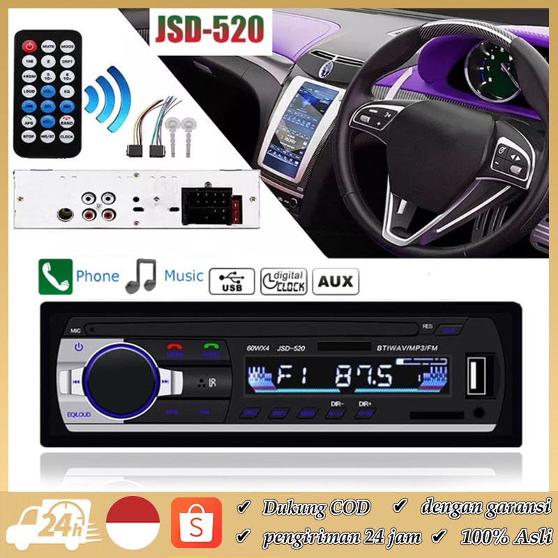 ✦Ready ya,✦ JSD-520 Head Unit Single Din Stereo Dengan Bluetooth Handsfree Untuk Mobil Tape Audio Radio Mobil Multifungsi Bluetooth USB MP3 FM Radio JSD-520