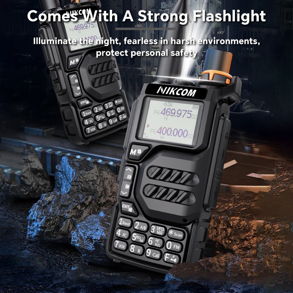 HT NIKCOM Radio Portabel Walkie talkie jarak jauh 10 Watt U/V Radio dua arah 200 saluran Di luar ruangan/Tahan air Handy