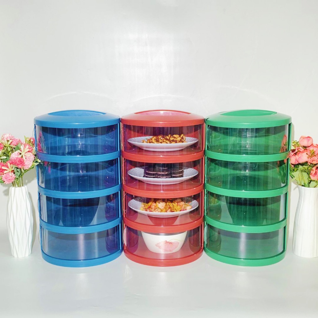 Tudung Saji 4 Susun POLOS Lebih Tebal Tempat Penyimpanan Makanan 4 Tingkat Fit Praktis Murah Aman