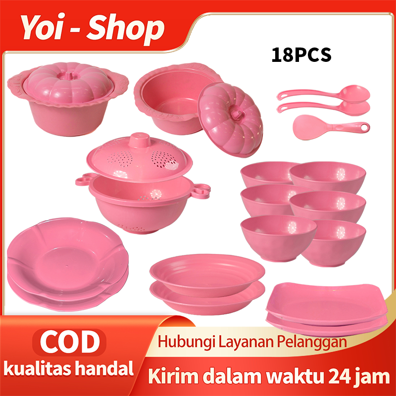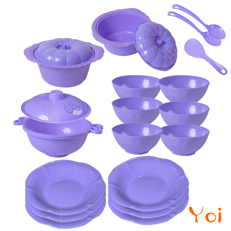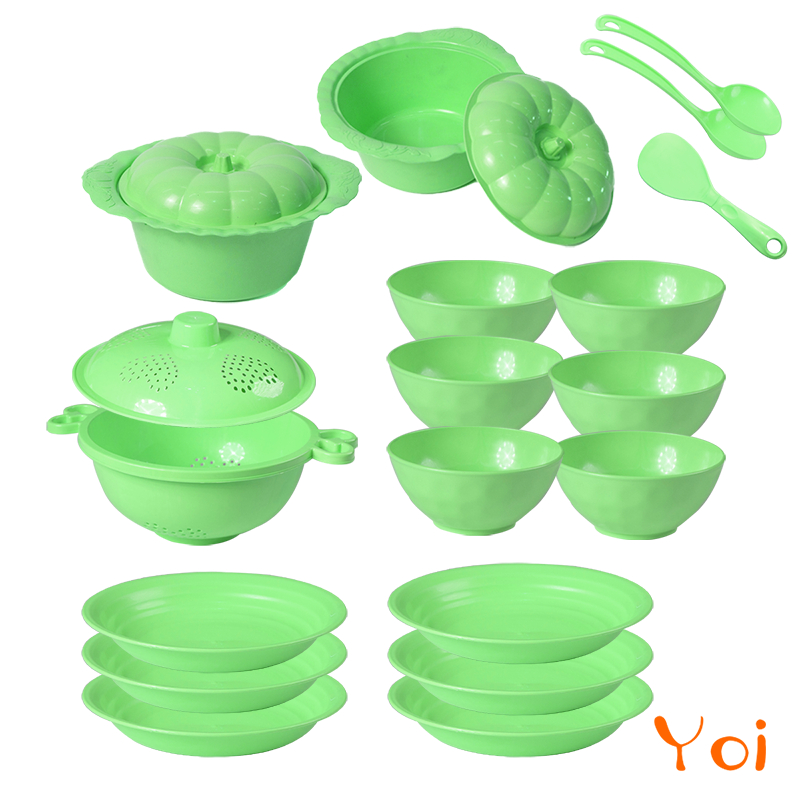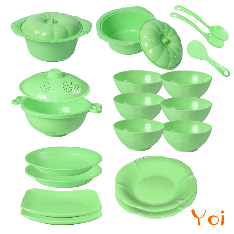 Yoi - (18PCS)Set Prasmanan Basi Bulat 2 Tempat Nasi 1 Mankok 6 Piring 6 Sendok Nasi 1 Sendok Sup 2