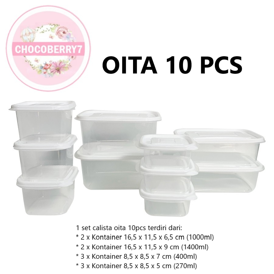 Calista Oita Putih Bening Toples Set isi 10 / Furano isi 6 / Container Kulkas Wadah Makanan Putih
