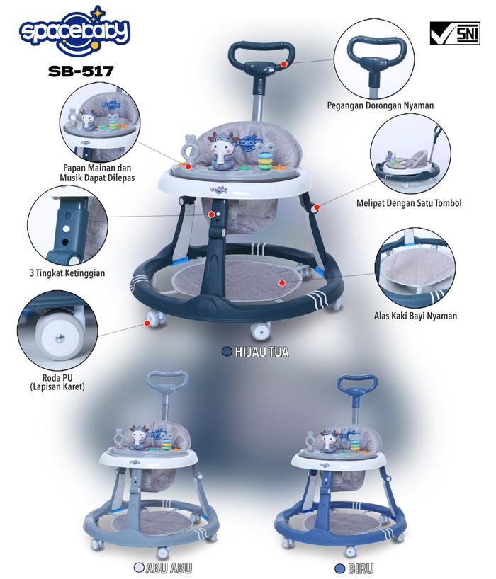 DP 0 BABY WALKER SPACE BABY SB 517 SB517ADA MUSIKHIJAU