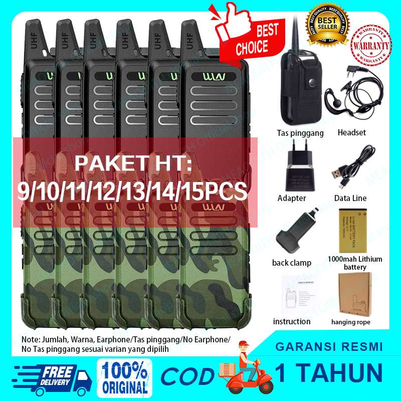 【Instant 】Ht Wln C1 14pcs Walkie Talkie Original WLN C1 Portabel Jarak Jauh Anti Jatuh Handy Talky (Hitam/Army)