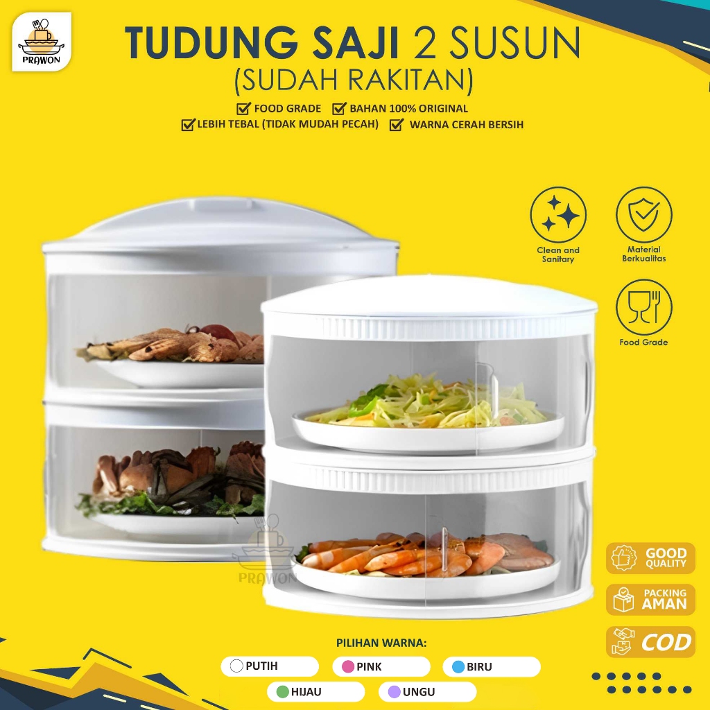 Tudung Saji FIT 2 Susun Sudah Rakitan Lebih Tebal Praktis Tempat Penyimpanan Makanan Banyak Varian Warna Lucu