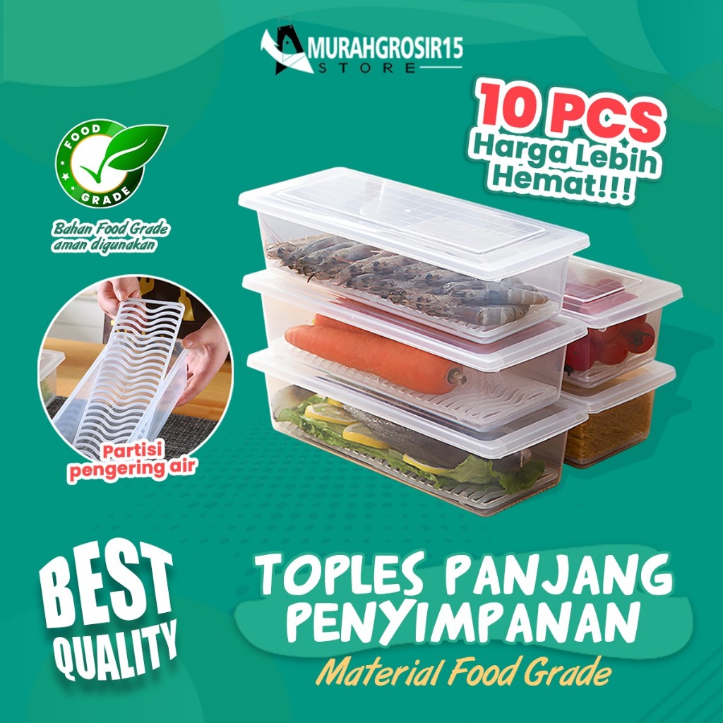 (SET ISI 10 PCS ) Toples Panjang Serbaguna / Wadah Penyimpanan Sayur Ikan Snack Serbaguna