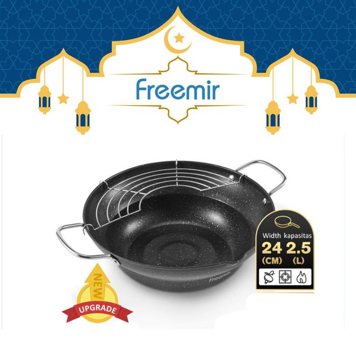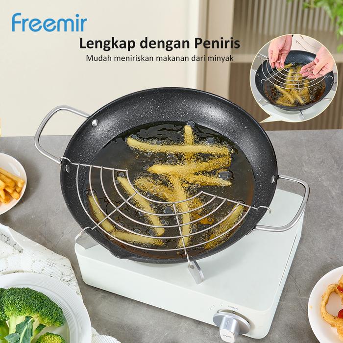 freemir Deep Fryer 24 Cm Anti Lengket Panci Penggorengan Multifungsi Stainless Steel GRATIS PENIRIS