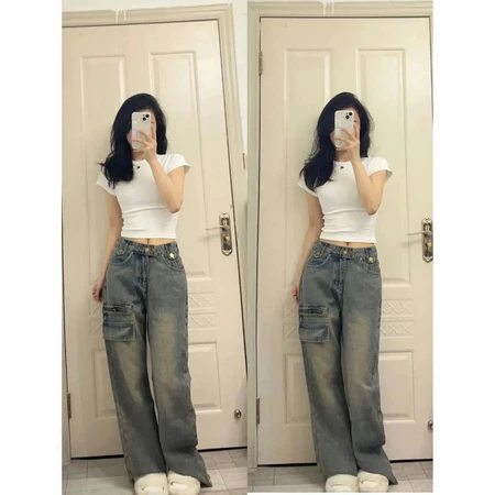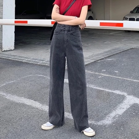 Forteid Celana Jeans Korean Style Ootd |High Waist Loose Black Jeans Cargo Jeans wanita Jeans