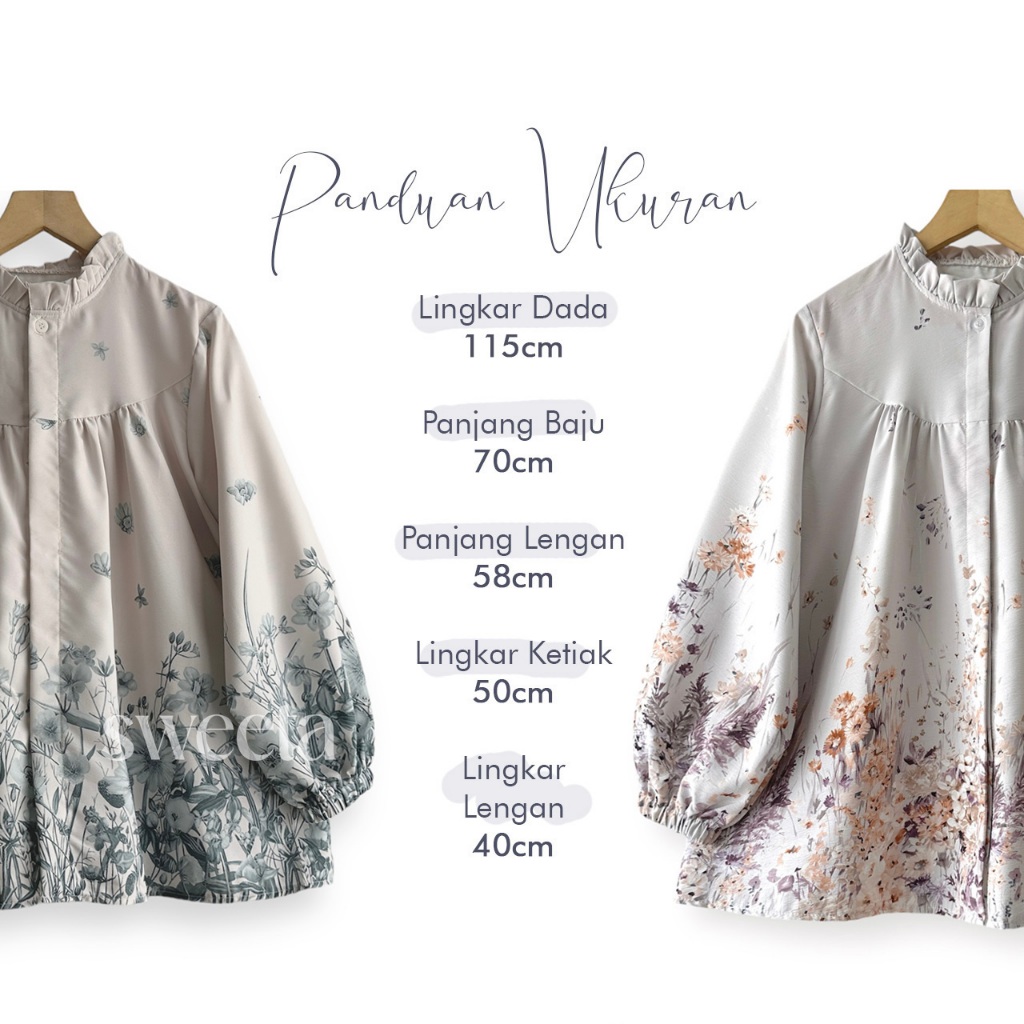 Blus U Rample Motif Flower | Silk Cotton | LD 115 cm | Korea Style | kancing dapat dibuka |/atasan/blouse/wanita/