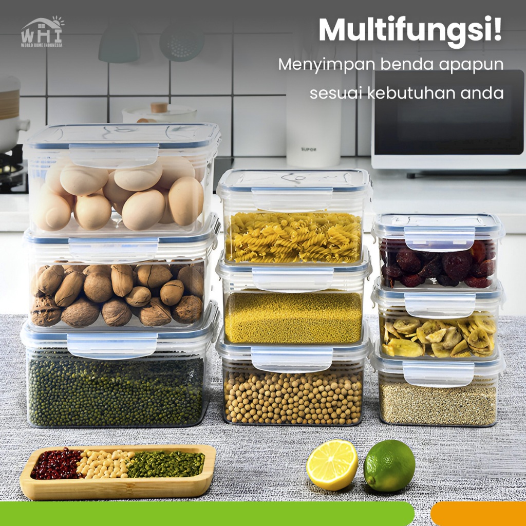 World Home Kotak Plastik Kedap Udara 6 Pcs & 8 Pcs Kotak Makanan Buah Sayur Kotak Plastik Beranak