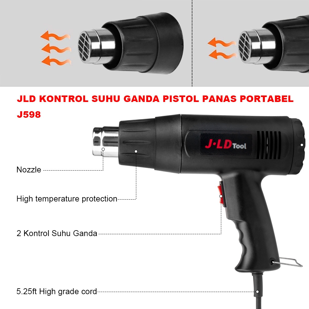 JLD Hot Air Heat Gun 1500W Panas Pemanas Pis tol Panas Kontrol Suhu Ganda Pis tol Panas Portabel J598