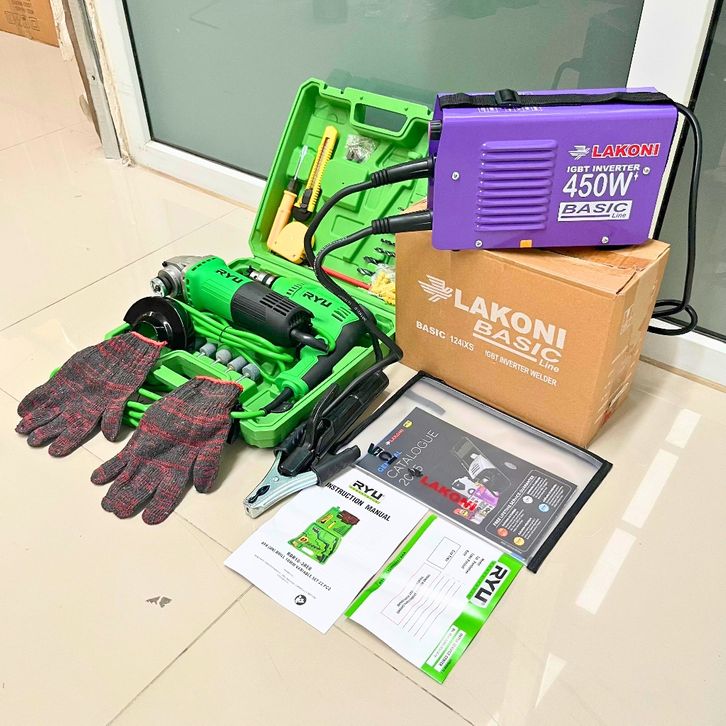 [Star] PAKET HEMAT 3 ITEM MESIN LAS LAKONI 450 WATT - GERINDA TANGAN 4 RYU - MESIN BOR LISTRIK 10MM FULL SET KOPER RYU