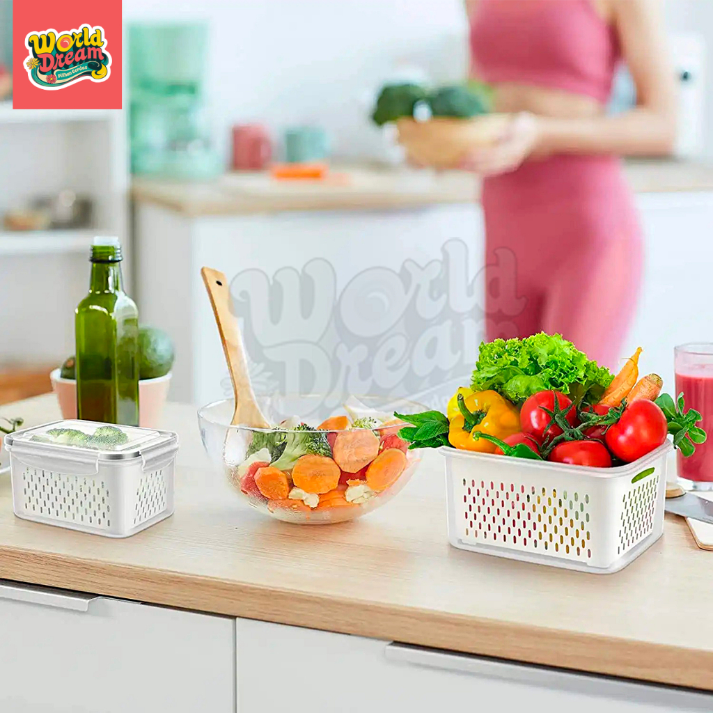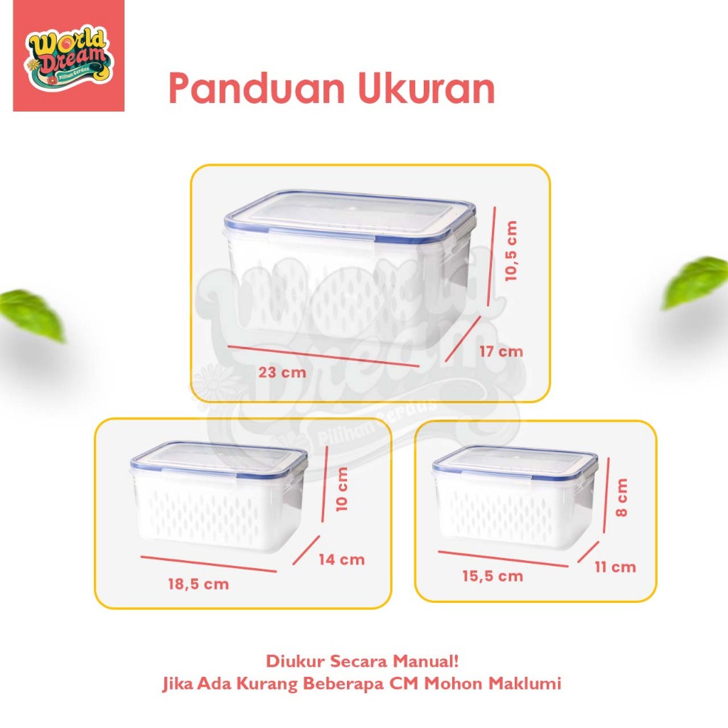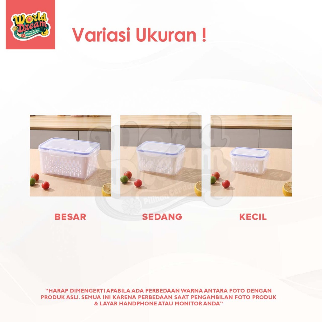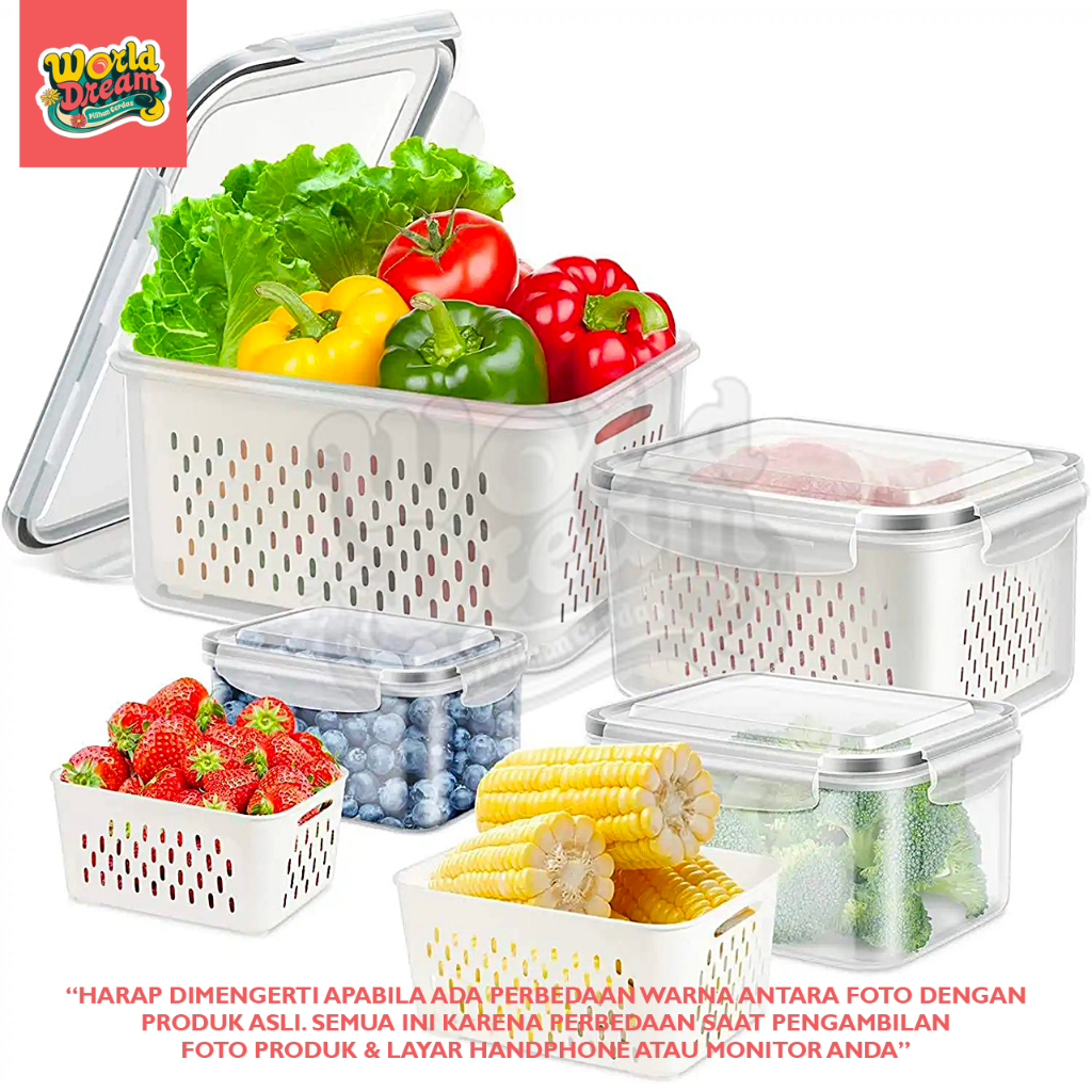 WORLDREAM Kotak Makanan Plastik Set Bebas BPA Ada Peniris Food Container Box Plastik Kulkas Makanan