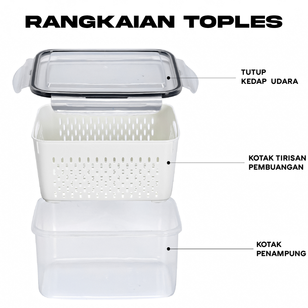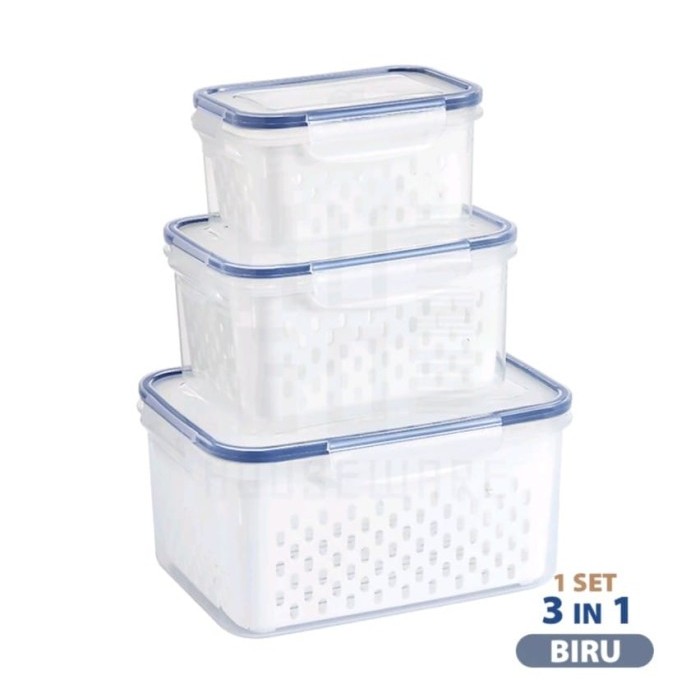 Kotak Penyimpanan Saringan 3 in 1 Wadah Saringan Pengering Sayur Kontainer Tirisan Kotak DTG_grup