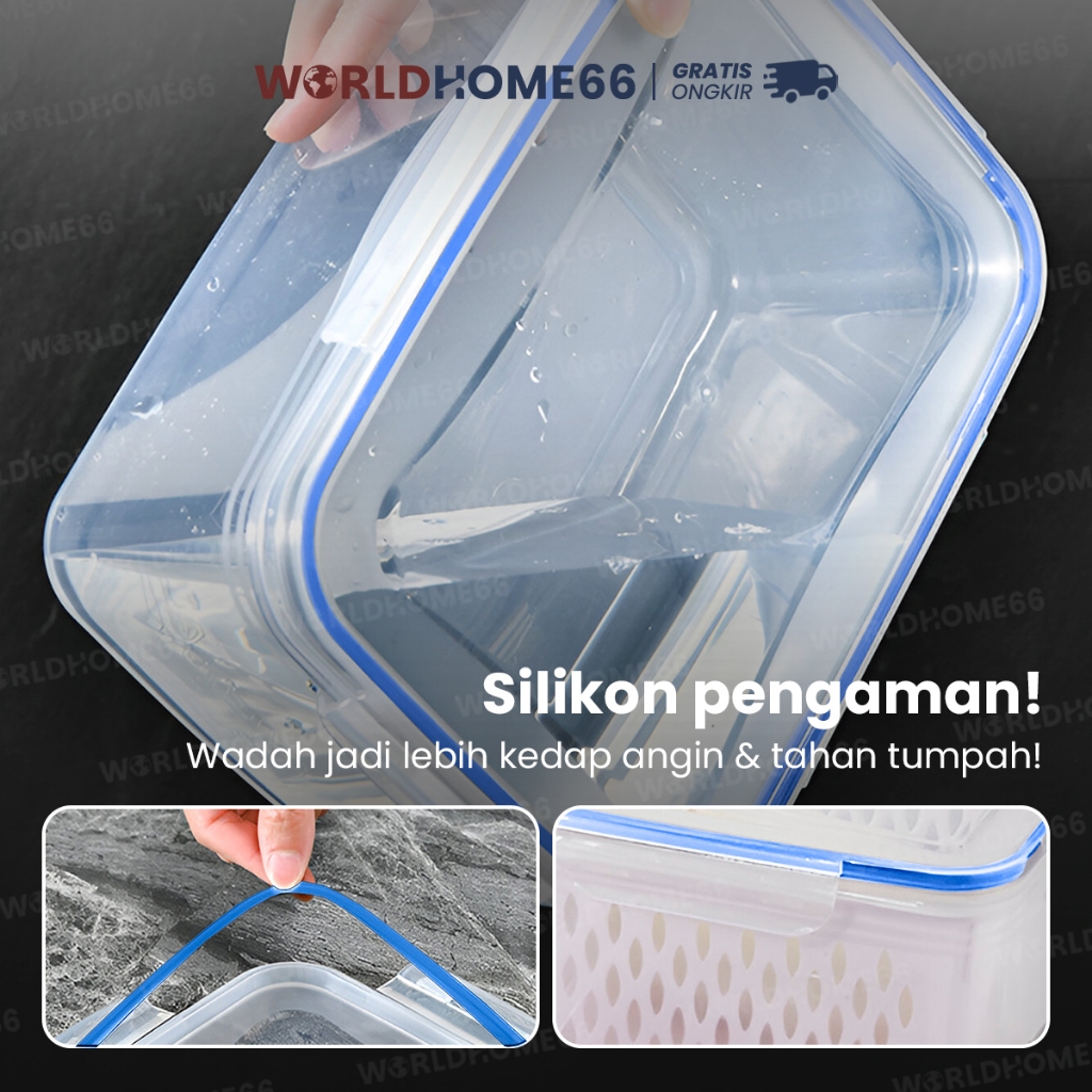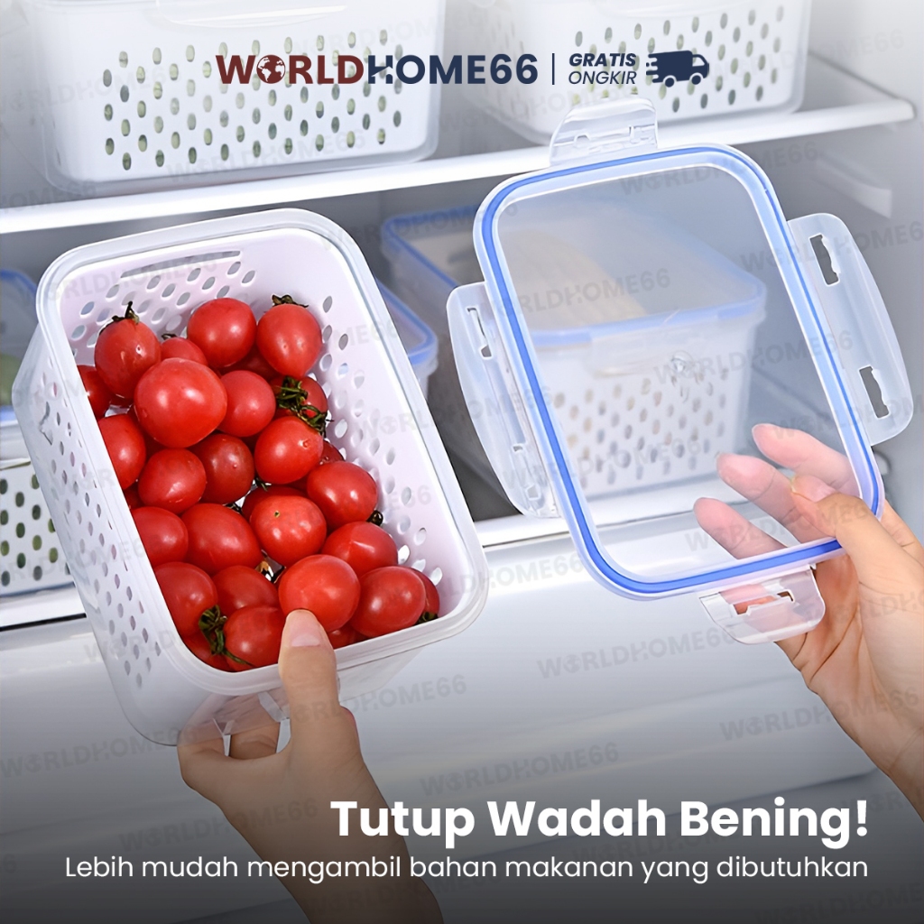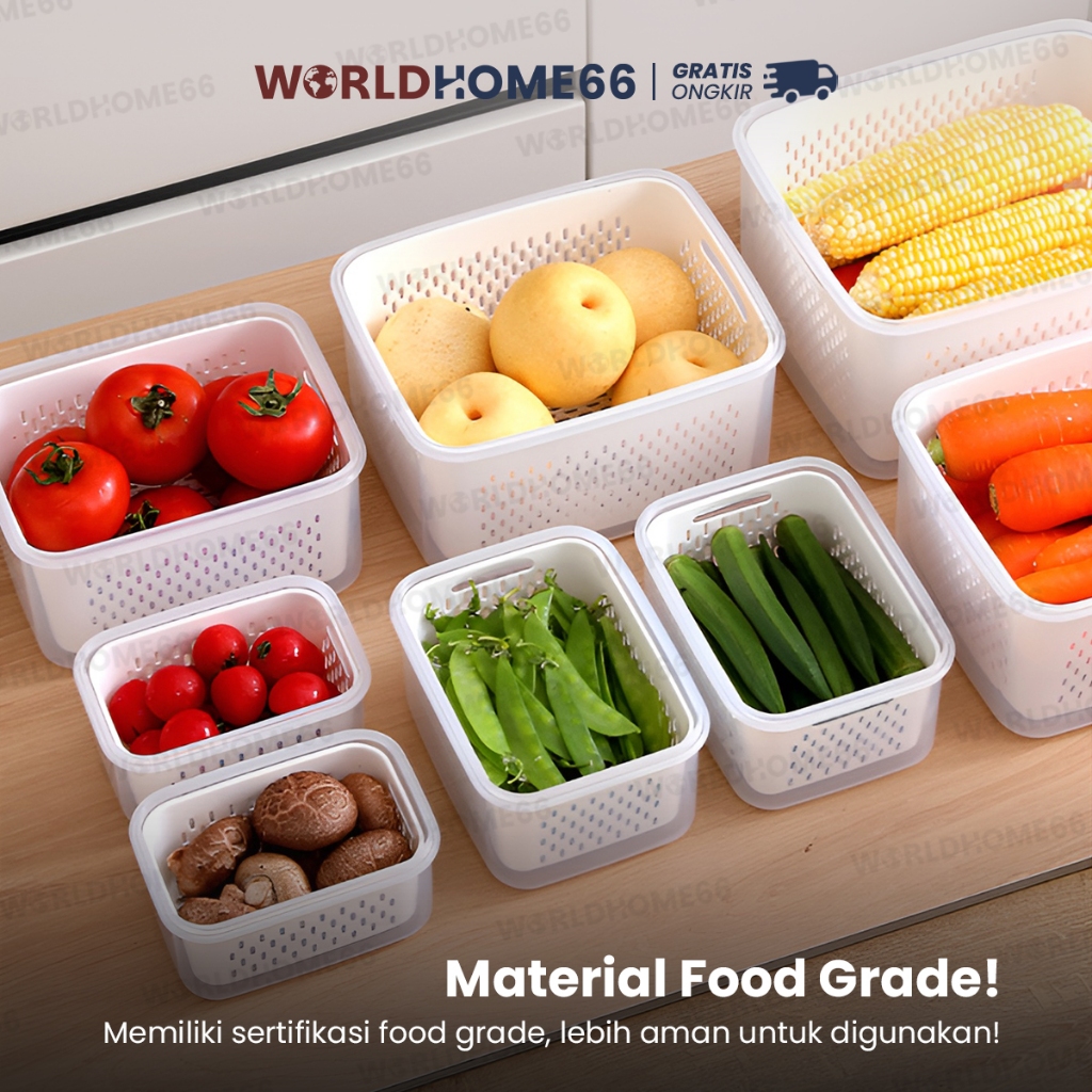 Worldhome Kotak Makanan Food Container Kotak Penyimpanan Keranjang Peniris Kotak Plastik PP