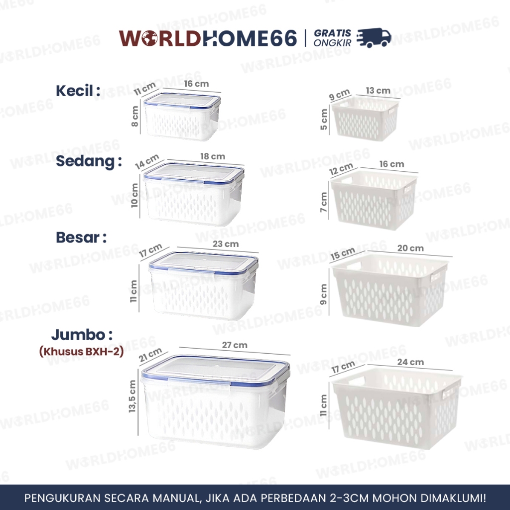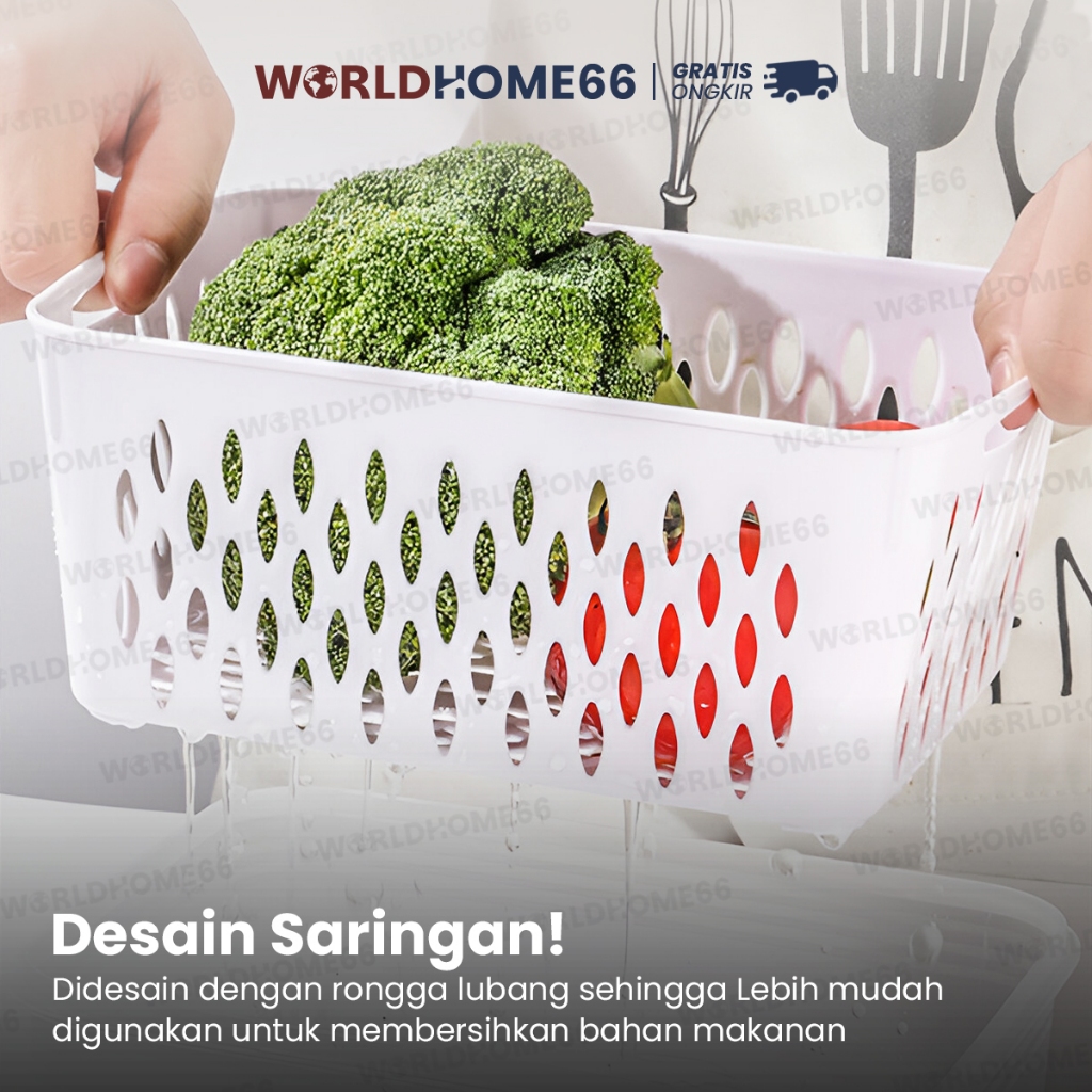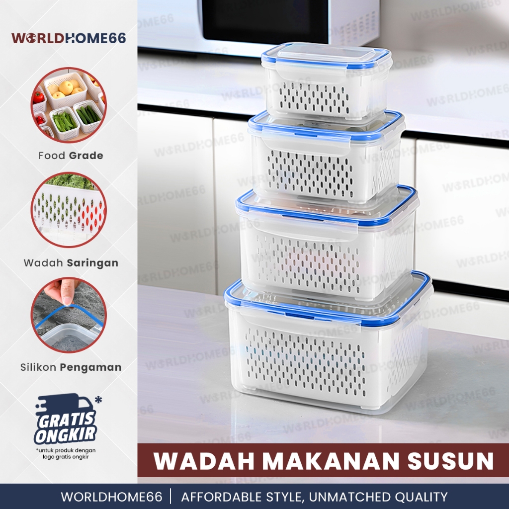 Worldhome Kotak Makanan Food Container Kotak Penyimpanan Keranjang Peniris Kotak Plastik PP