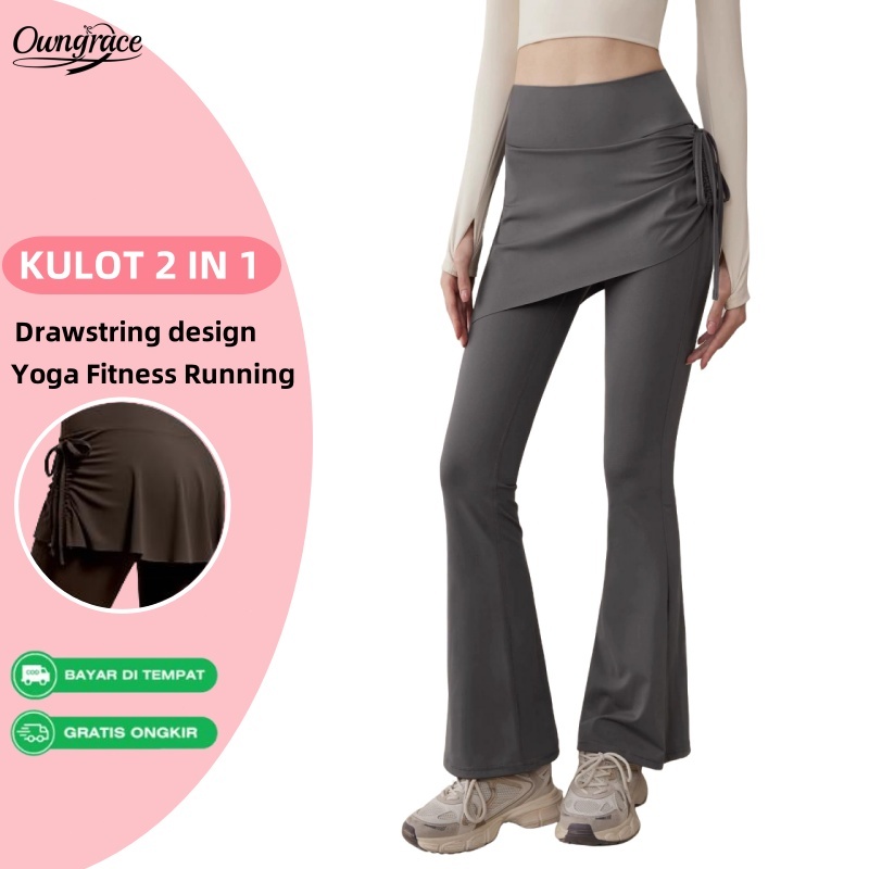 Owngrace Legging Rok Celana Olahraga Wanita Highwaist Skirt Pant Tali Serut Samping Pilates Yogaay wanita celana rok wanita celana