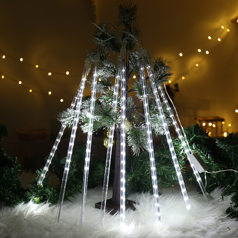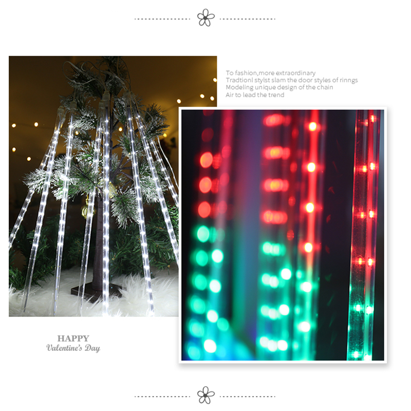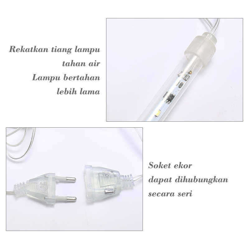 Lampu Meteor LED Warna-warni 50cm 8 Batang / Lampu Hujan Merah-Putih RGB Jatuh Salju Taman Hias