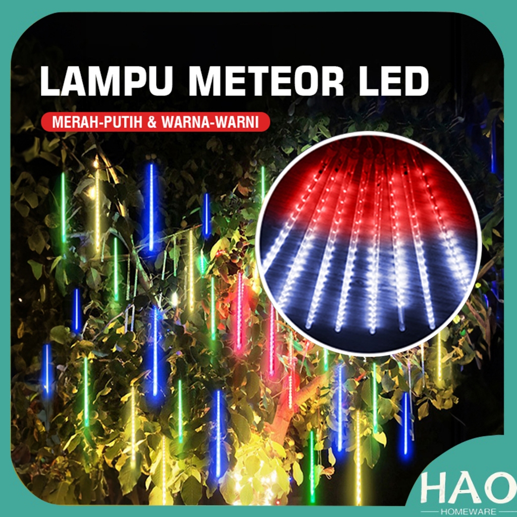 Lampu Meteor LED Merah-Putih 50cm 8 Batang / Lampu Hujan Meteor RGB Jatuh Salju Taman Hias