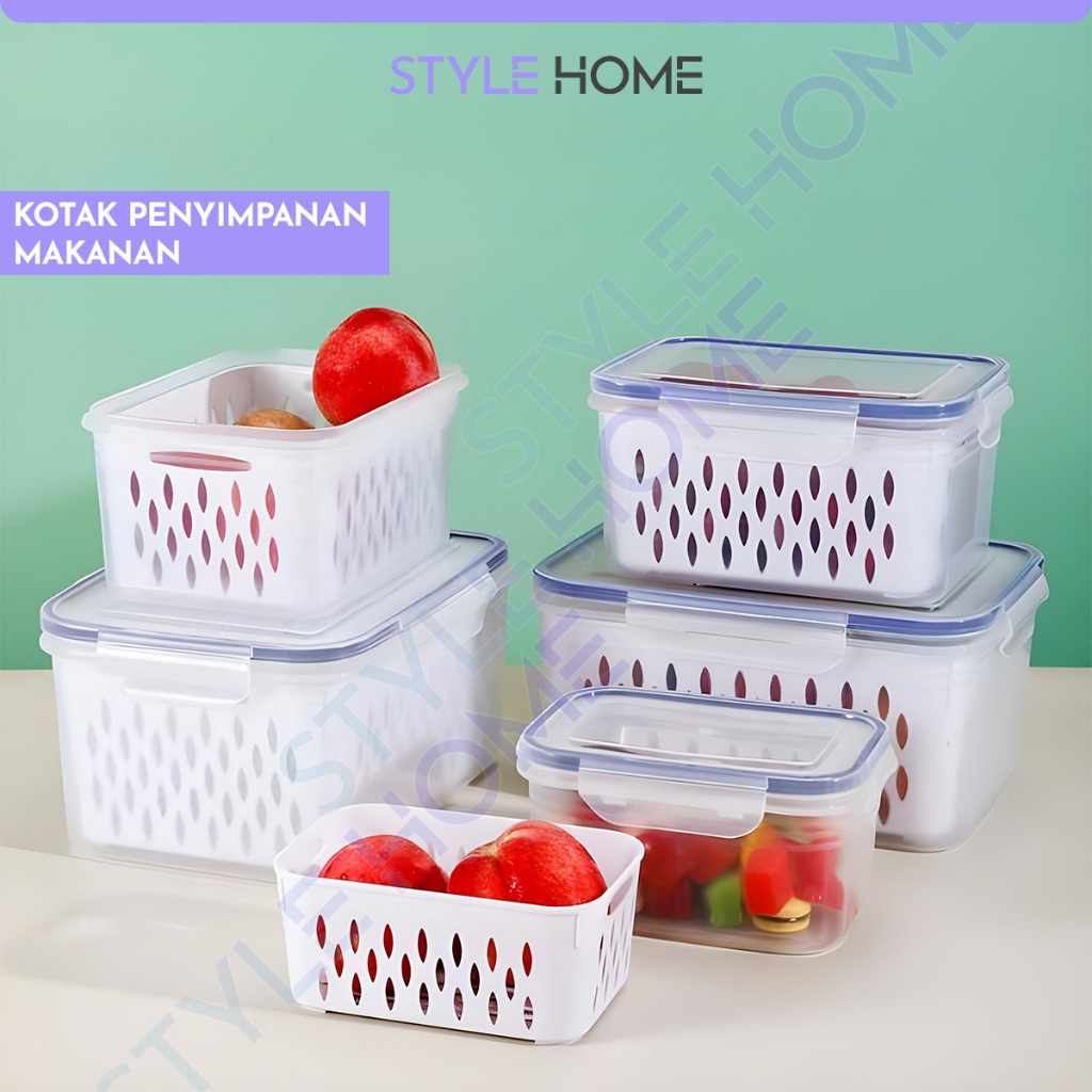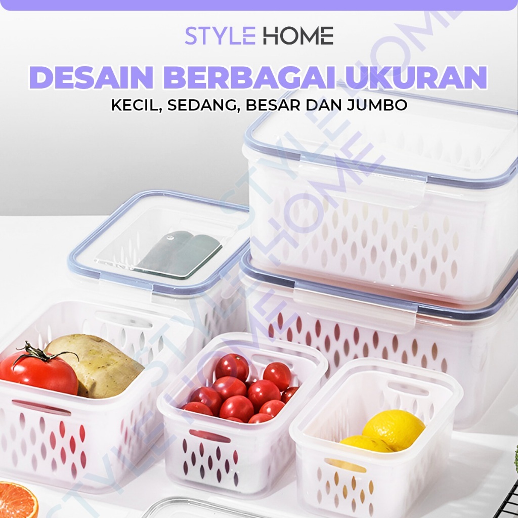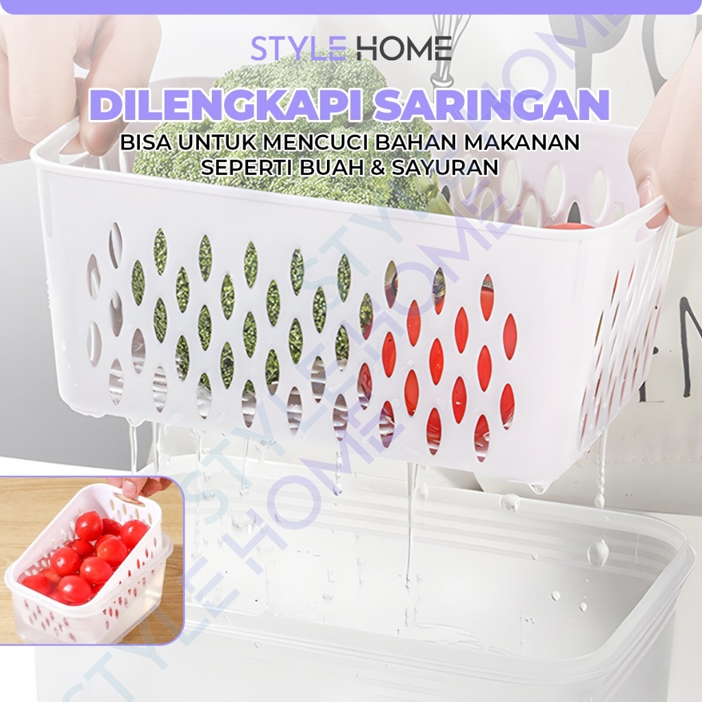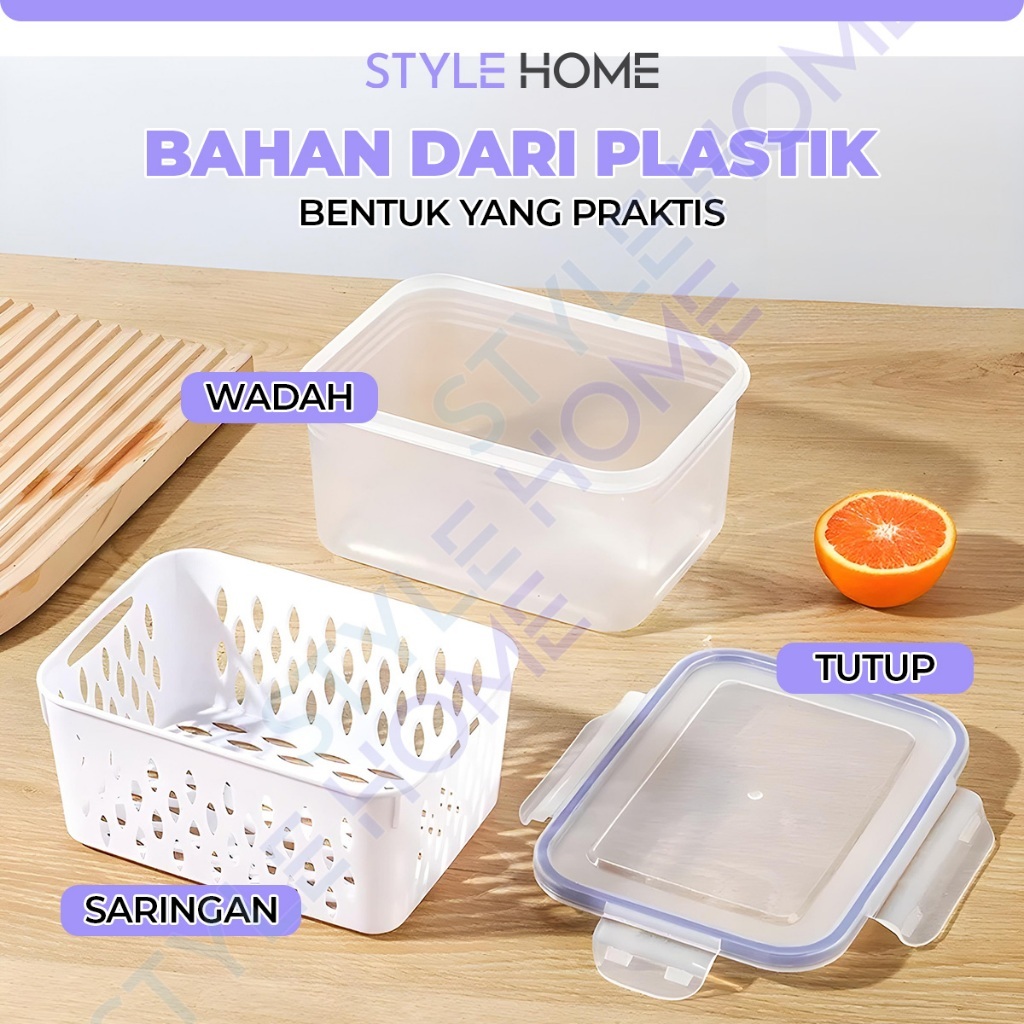 Stylehome kotak penyimpanan kulkas dengan saringan Kotak Penyimpanan Makanan 3 in 1 Pengering Sayur