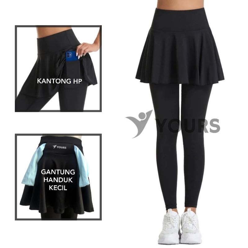 YOURS - Legging Skirt Highwaist / Celana Legging Rok Yoga Gym / Legging Rok Olahraga Slot Handuk Kecil