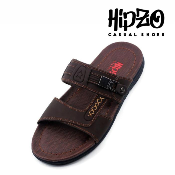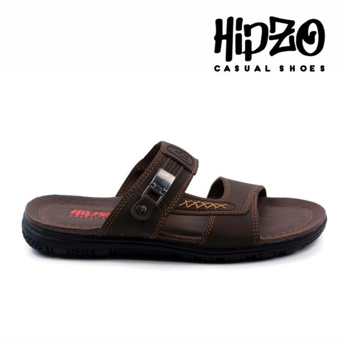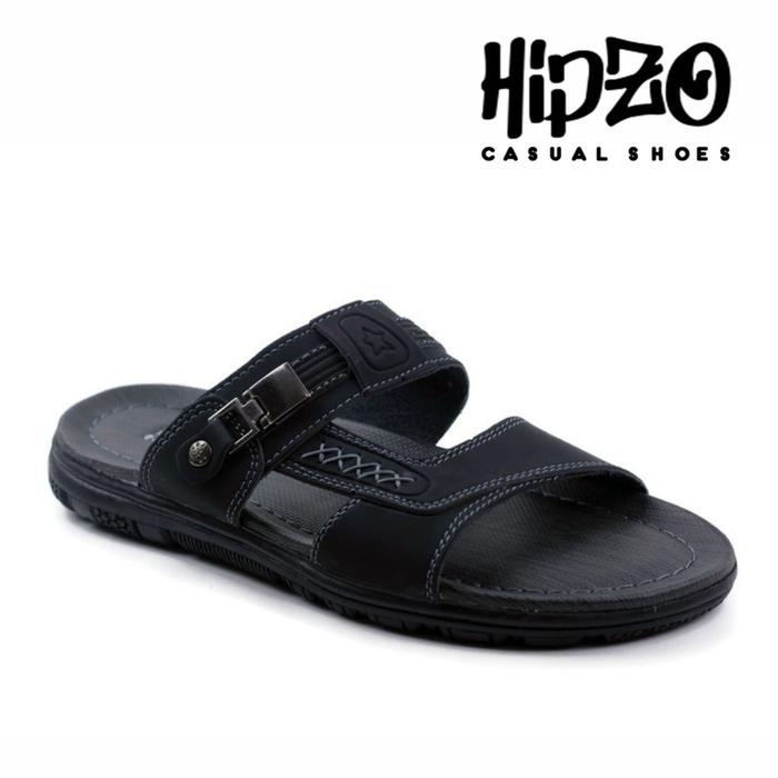 DP 0 HIPZO SANDAL KULIT SELOP PRIA CT01 KASUAL PELINDUNG KAKI UNTUK COWOK DEWASA SENDALHITAM 39