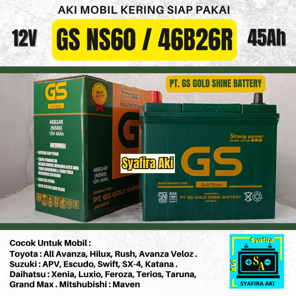 Aki Mobil AVANZA G / VELOZ TERIOS XENIA RUSH GS MF NS60 AKI KERING 12V 45AH Aki Mobil 60 Ampere 70 Ampere Accu Mobi