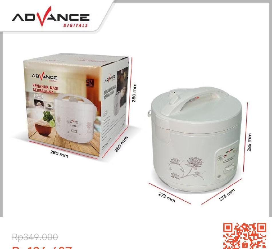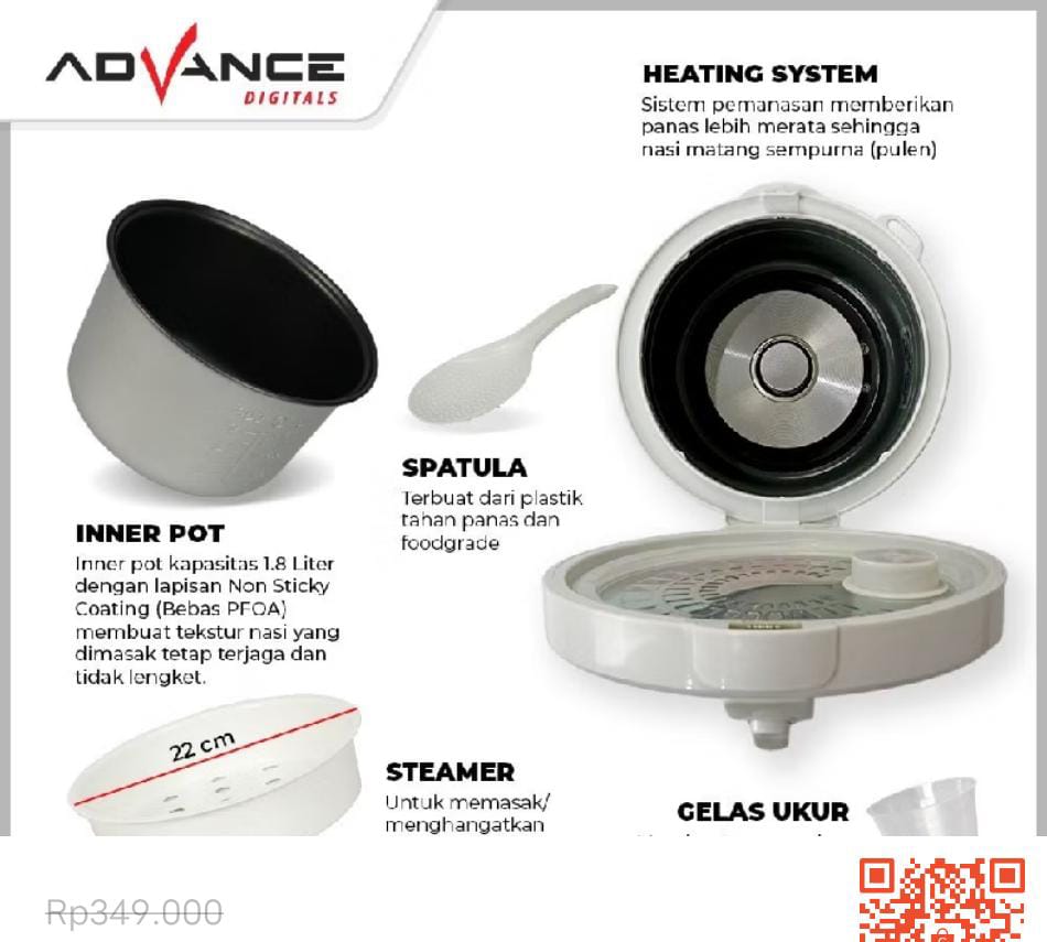 Advance Rice Cooker A-21 / A21 Kapasitas 1.8Liter Penanak Nasi Mejikom Serbaguna 3in1 Magic Com
