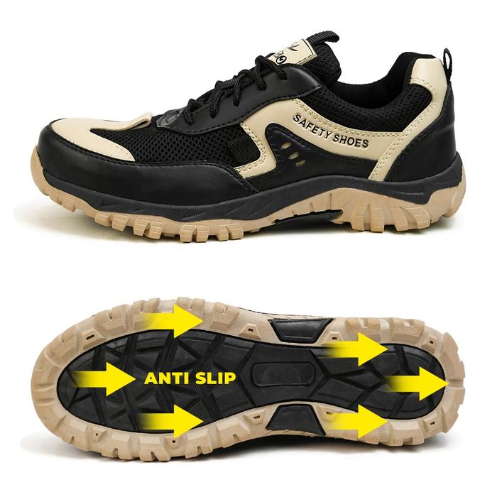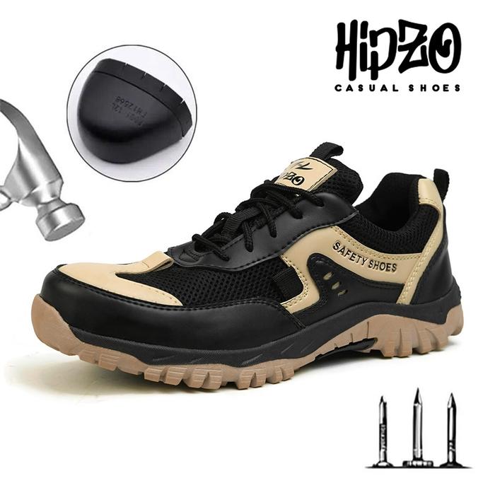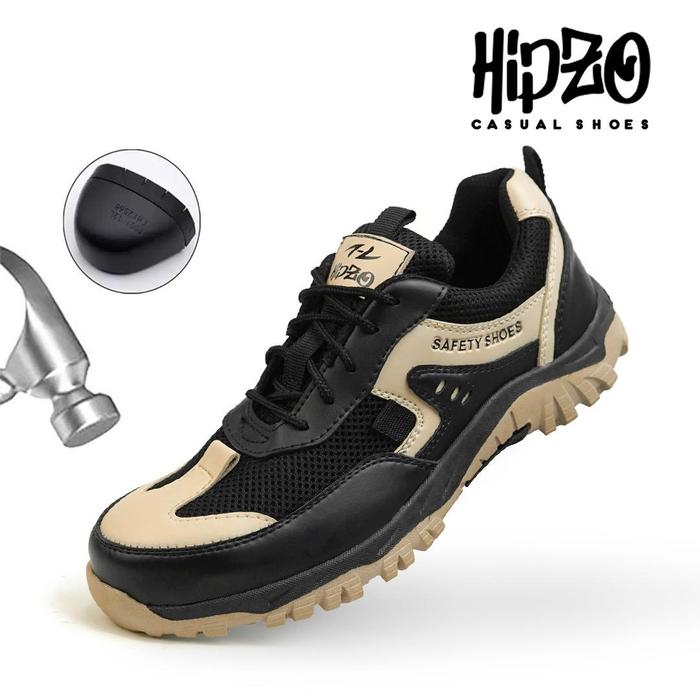 DP 0 HIPZO SEPATU SAFETY SPORTY M069 UNTUK PRIA KERJA PABRIK PROYEK TAMBANG SHOES BESI HITAM BOOTSABU HITAM 39
