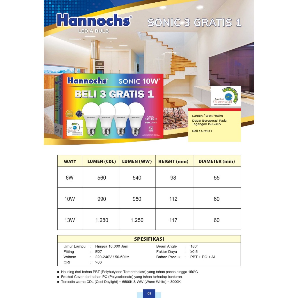 MULTIPACK HANNOCHS SONIC (Beli 3 Gratis 1) 6W/ 10W/ 13W / Bundling Hemat / Beli 3 Lebih Hemat Free 1