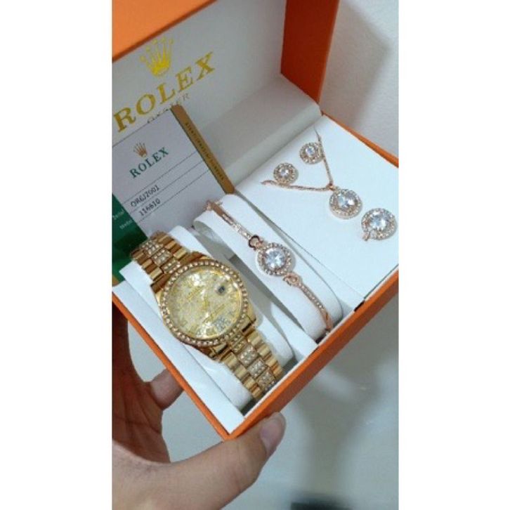 jam tangan wanita set Free Box+Kartu+Paperbag+1Set Acc Jam Tangan Wanita Rolex Premium Mewah Paket Promo