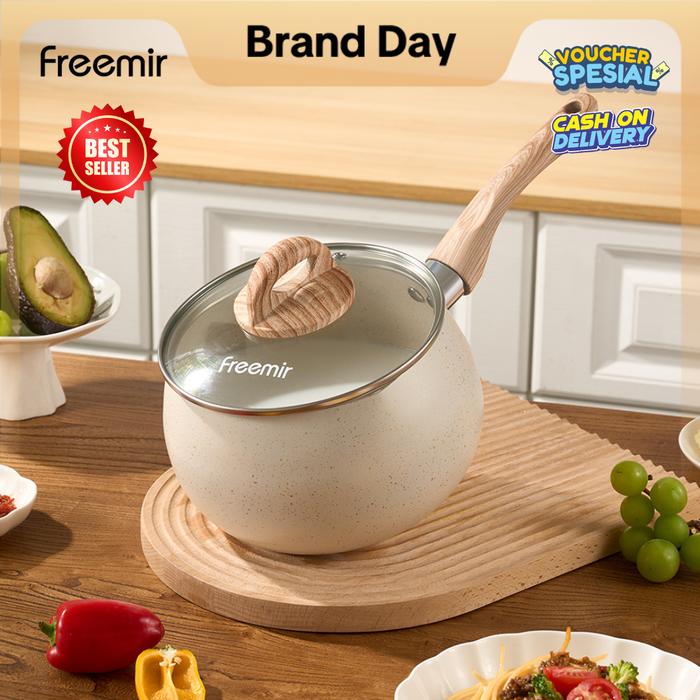 EXTRA freemir Panci Gemoy 16/20Cm Panci Masak Susu Rebus MPASI Anti Lengket Granit Beige Panci