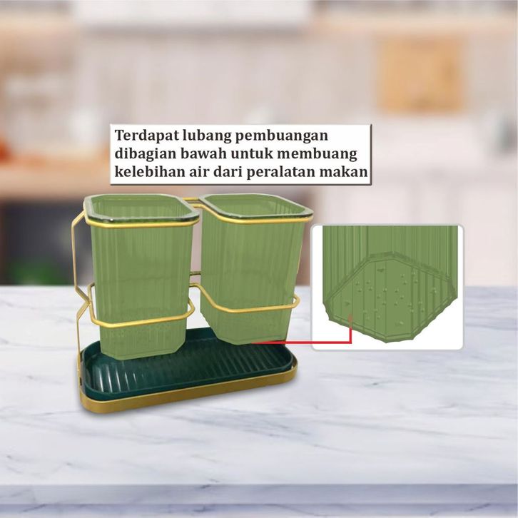 TERBARU Tempat Sendok Garpu Sumpit Dinding Minimalis dengan Peniris Air / Cutlery Holder Serbaguna / Rak
